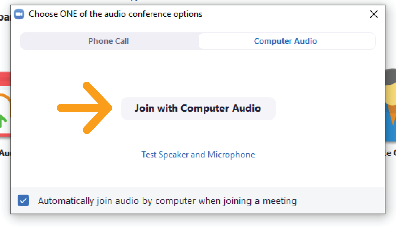 Click “Join with Computer Audio.”